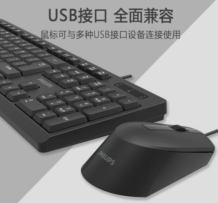 飛利浦SPT6234有線(xiàn)辦公鍵鼠套裝 筆記本臺式電腦USB商務(wù)鍵盤(pán)鼠標