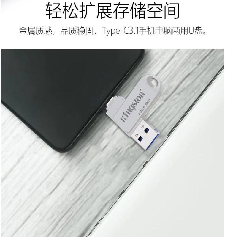 金士頓Type-c手機電腦兩用U盤(pán)128G高速USB3.1華為小米安卓OTG優(yōu)盤(pán)