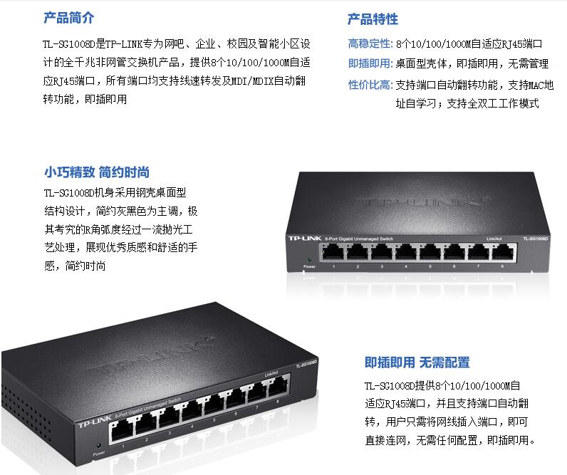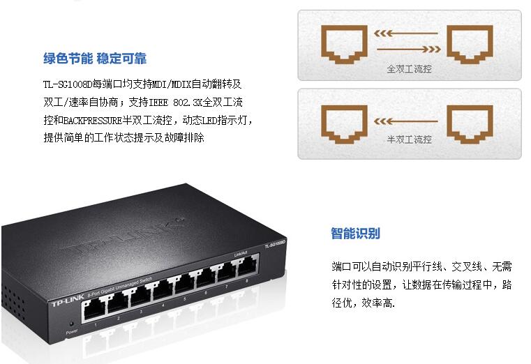 TP-LINK TL-SG1008D 8口千兆交換機 鋼殼高速1000M網(wǎng)絡(luò )tplink安防監控交換機八口