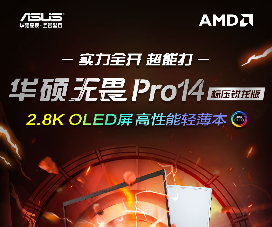 華碩無(wú)畏Pro14 標壓銳龍版 2.8K OLED屏輕薄筆記本電腦