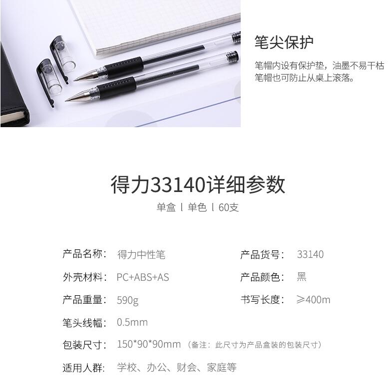 得力文具33140中性筆學(xué)生考試量販式黑筆水筆碳素筆0.5mm辦公用品包郵書(shū)寫(xiě)工具60支裝