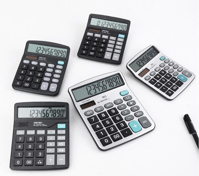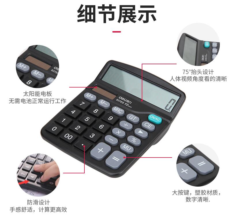 得力837計算器辦公用會(huì )計專(zhuān)用太陽(yáng)能學(xué)生用帶語(yǔ)音大學(xué)財務(wù)小號便攜雙電源計算機器按鍵文具辦公用品大號
