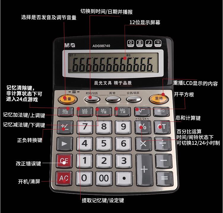 晨光計算器帶語(yǔ)音辦公用會(huì )計專(zhuān)用商務(wù)計算機辦公室大號大按鍵大屏幕女真人發(fā)音財務(wù)學(xué)生用小號便攜電子記算器