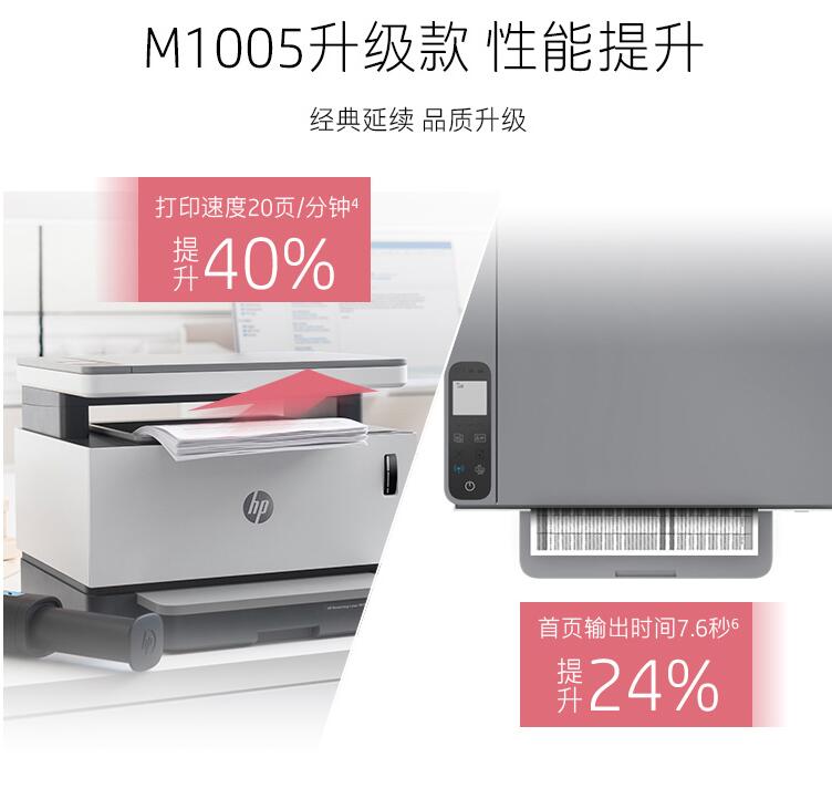 HP/惠普 Laser NS 1005W 創(chuàng )系列 智能閃充大粉倉一體機 無(wú)線(xiàn)激光多功能 無(wú)線(xiàn)打印復印掃描三合一
