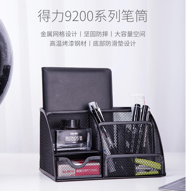 得力9200金屬網(wǎng)格筆筒組合辦公用品桌面收納筆插文具整理盒多功能筆座大容量小清新時(shí)尚可愛(ài)創(chuàng )意收納網(wǎng)紋網(wǎng)狀